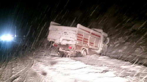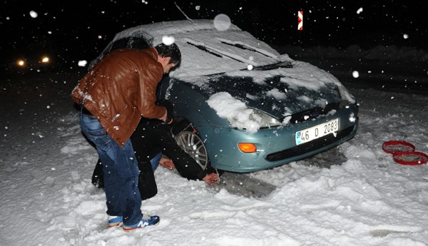 Kar yağışı yolları kapadı, araçlar mahsur kaldı