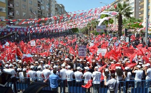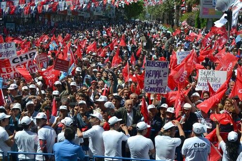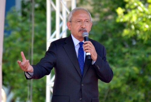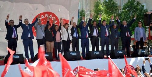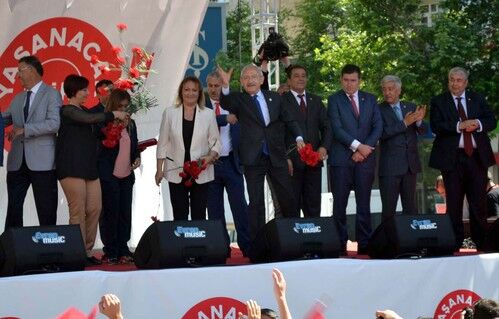 Cumhuriyet Halk Partisi (CHP) Genel Başkanı Kemal Kılıçdaroğlu (soldan 7.) , AKP’nin yoksulluğu bitirme vadiyle iktidara geldiğini ancak devleti soyduğunu savundu.