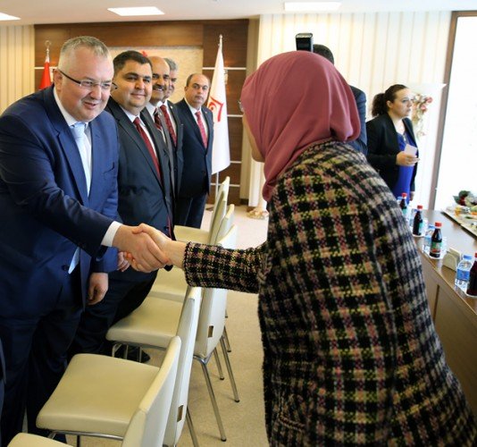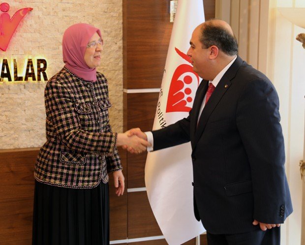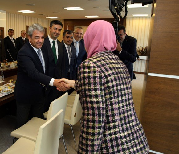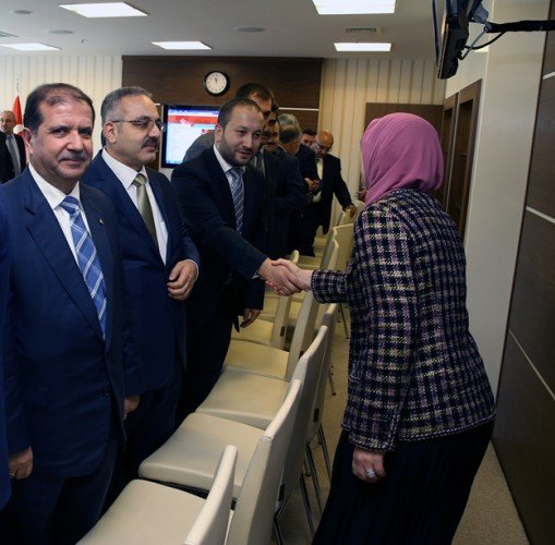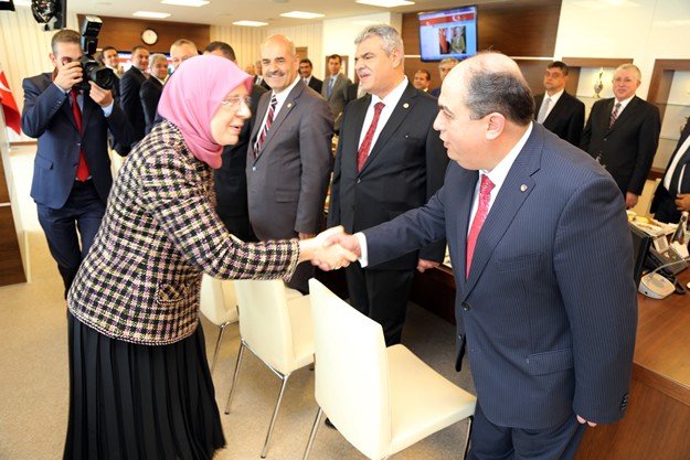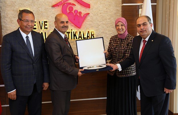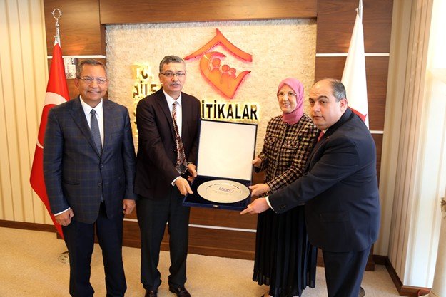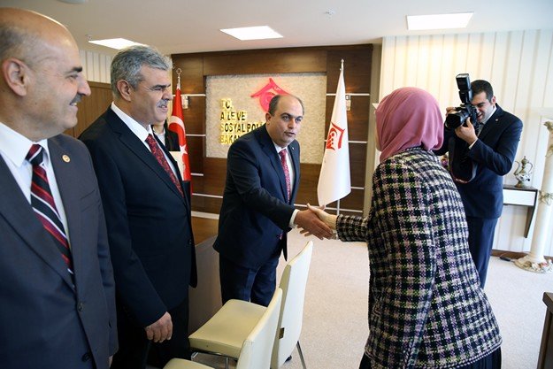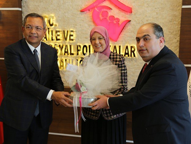 Kahramanmaraş Ticaret ve Sanayi Odası Yönetim Kurulu Başkanı Kemal Karaküçük, KMTSO Meclis Başkanı Hanifi Öksüz ile beraberindeki yönetim kurulu üyeleri, Aile ve Sosyal Politikalar Bakanı Sema Ramazanoğlun’u ziyaret ederek ‘hayırlı olsun’ dileğinde bulundu.