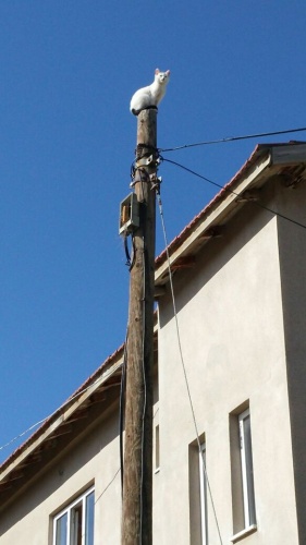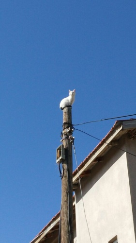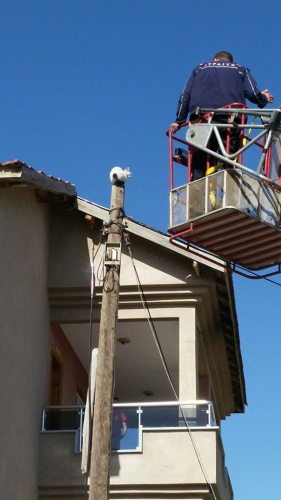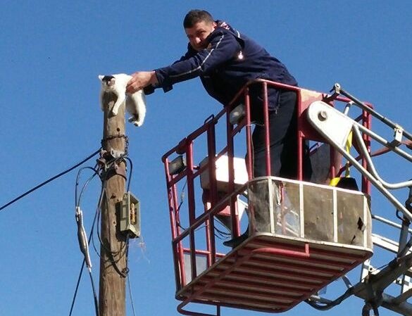 Afşin ilçesinde köpekten kaçarken tırmandığı telefon direğinde 2 gün boyunca mahsur kalan kedi, itfaiye ekiplerince kurtarıldı.