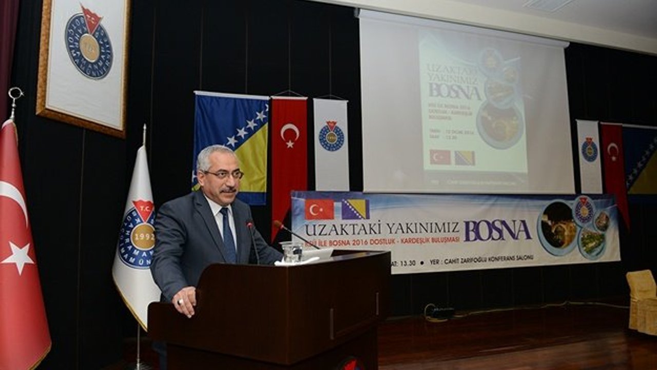 KSÜ ile Bosna 2016 Dostluk-Kardeşlik Buluşması programı açılış konuşmasını yapan Rektör Prof. Dr. Durmuş Deveci, “Üniversite olarak elimizi Bosna’ya uzatıyoruz.” diyerek söze başlarken, 2016 yılını Bosna ile dostluk ve kardeşlik yılı ilan ettiklerini belirtti. Başta Bosna’daki üniversiteler olmak üzere diğer kurumlarla da işbirliği için kapıları açtıklarını belirten Deveci, Osmanlı’nın izinde oldukların söyleyerek Orta Asya’ya, Balkanlar’a sonra da Ortadoğu olmak üzere bu işbirliklerine devam edeceklerini söyledi. Bosna ile dostluk ve kardeşlik buluşması programına katılmak üzere Bosna’dan 30 kişilik bir grup öğrencinin de katıldığını belirten Deveci, “Azerbaycan ile yaptığımız işbirliği gibi Bosna ile de yapacağımız işbirliği ve kurduğumuz gönül köprüsü sadece bir yıl ile sınırlı değildir.” şeklinde konuştu.