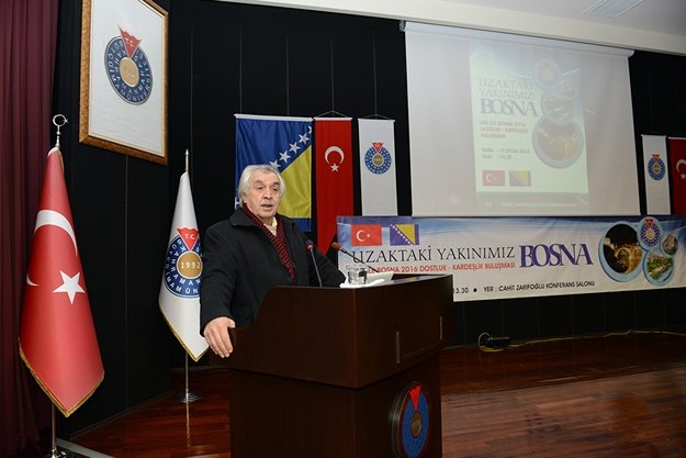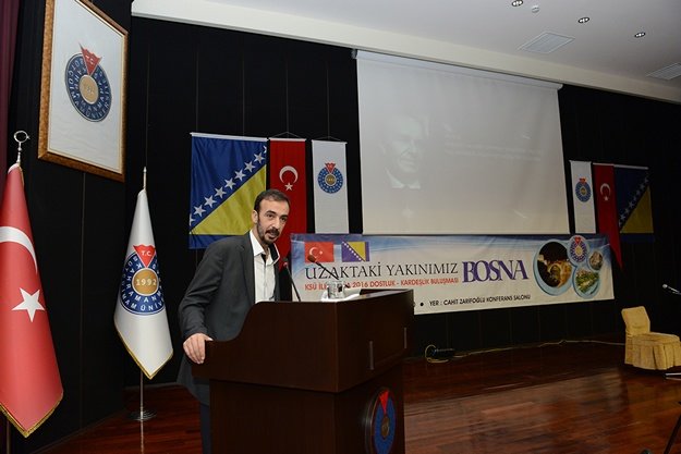 İİBF öğretim görevlisi İsmail Göktürk, yaptığı konuşmada, Osmanlı’dan önce Horasan erenlerinin Bosna’ya giderek İslam’ı yaydıklarını daha sonra 1463’te Bosna’nın Fatih Sultan Mehmet tarafından fethedildiğini ve 1878’de Avusturya-Macaristan yönetimine girdiğini söyledi. Göktürk, Osmanlı medeniyetinin inşa edildiği Bosna’yı 1992 yılında yaşanan savaştan sonra tanımaya başladığımızı söyleyerek, “Bosna’da Osmanlı medeniyetinin izlerini silerek Müslümanları yok etmeye çalışanlar başarısız olmuşlardır.” şeklinde konuştu.