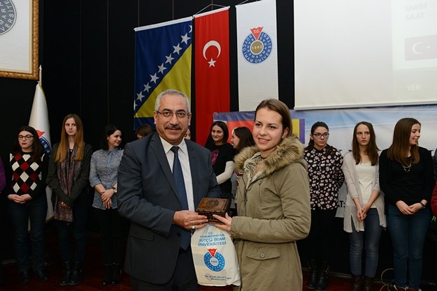 Cahit Zarifoğlu Konferans Salonu’nda düzenlenen programa, Bosna Hersek’ten gelen bir grup öğrenci ile birlikte KSÜ Rektörü Prof. Dr. Durmuş Deveci, Rektör Yardımcıları Prof. Dr. Fatih Kıllı, Prof. Dr. Ramazan Güneşaçar, Prof. Dr. İsmail Bakan İktisadi ve İdari Bilimler Fakültesi öğretim görevlisi İsmail Göktürk, Bosna Gönül Elçisi Osman Nalbant ve çok sayıda öğrenci katıldı.