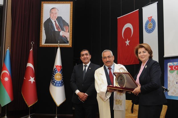 Kahramanmaraş Sütçü İmam Üniversitesi (KSÜ) Rektörü Prof. Dr. Durmuş Deveci'ye, Dünya Azerbaycanlıları Medeniyet Merkezi tarafından Haydar Aliyev'in anısına tesis edilen "Ebedi Lider Altın Döş Nişanı" takdim edildi.