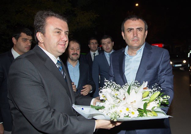 Kültür ve Turizm Bakanı Mahir Ünal (sağda), Kahramanmaraş Büyükşehir Belediye Başkanı Fatih Mehmet Erkoç'u (solda) ziyaret etti.