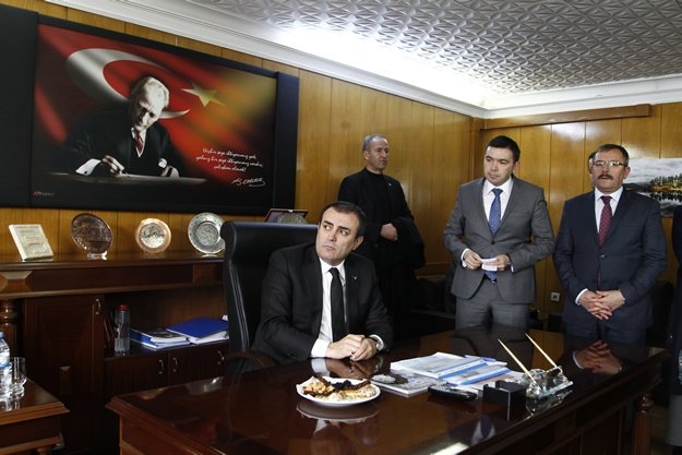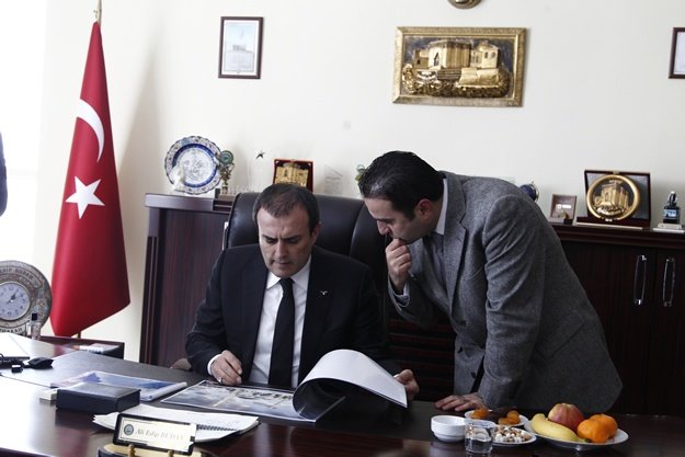 Kültür ve Turizm Bakanı Mahir Ünal, Kahramanmaraş'ın Göksun Kaymakamlığını ziyaret etti. Bakan Ünal, kaymakam Cengiz Ayhan'dan (sağ2), brifing aldı.