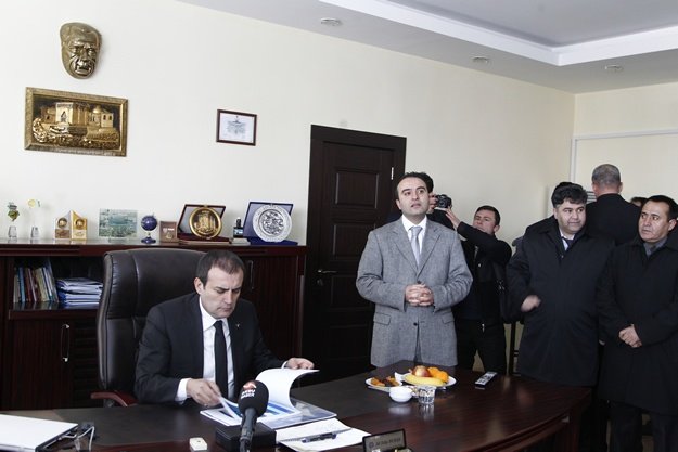 Kültür ve Turizm Bakanı Mahir Ünal, Kahramanmaraş'ın Afşin Kaymakamlığını ziyaret etti. Bakan Ünal, kaymakam Ali Edip Budan'dan (sol2) brifing aldı.