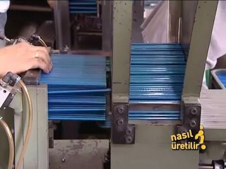 Profil makinesinde kalemler şekillendiriliyor.