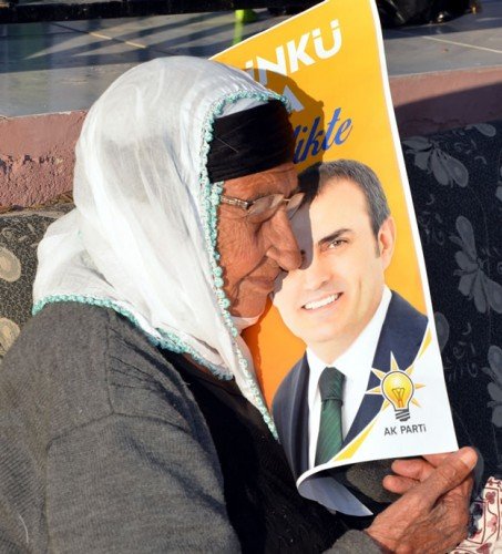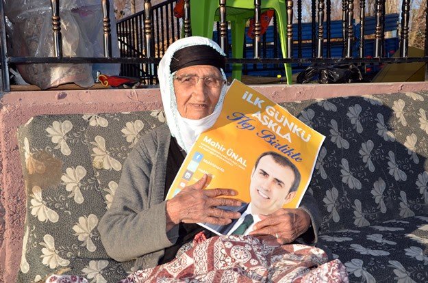 Elbistan ilçesine bağlı Karahüyük Mahallesi'nde yaşayan Mese Doğan, Kültür ve Turizm Bakanı olan Ünal'ın resmini öperek, onun için dua etti.