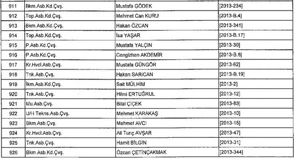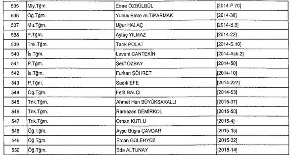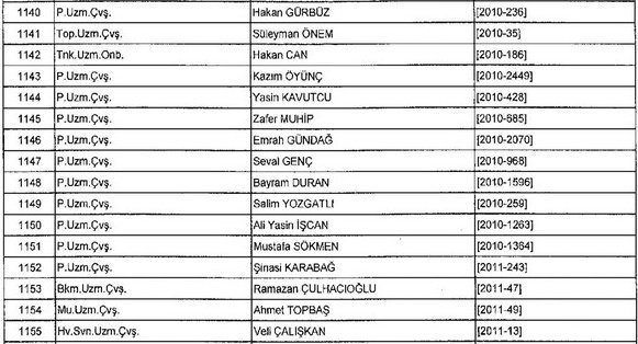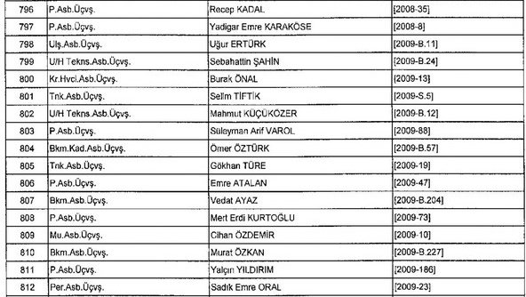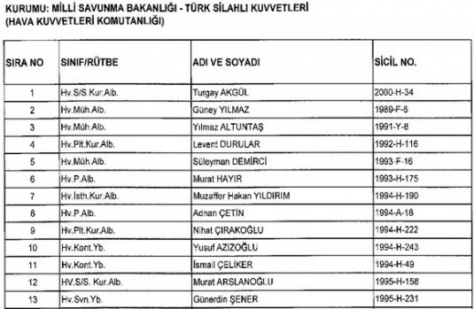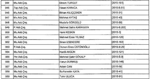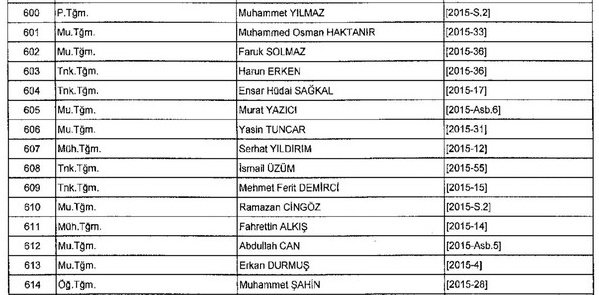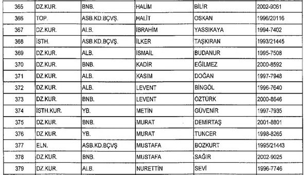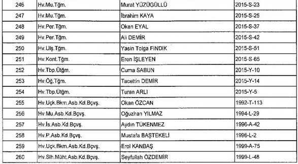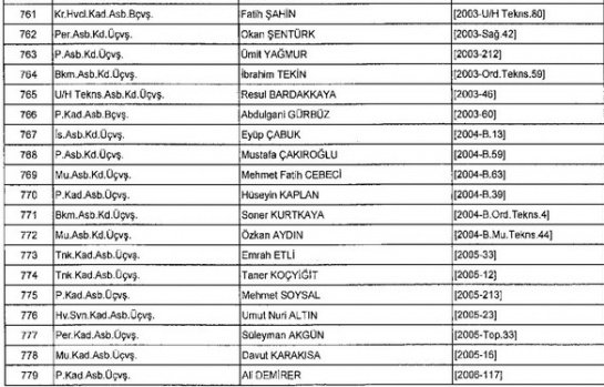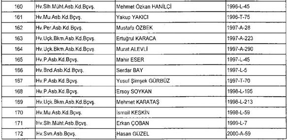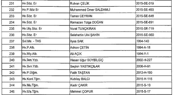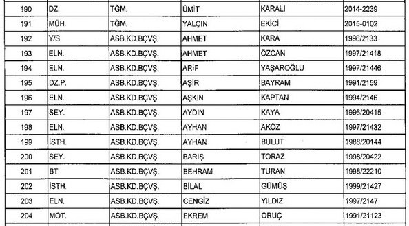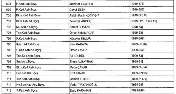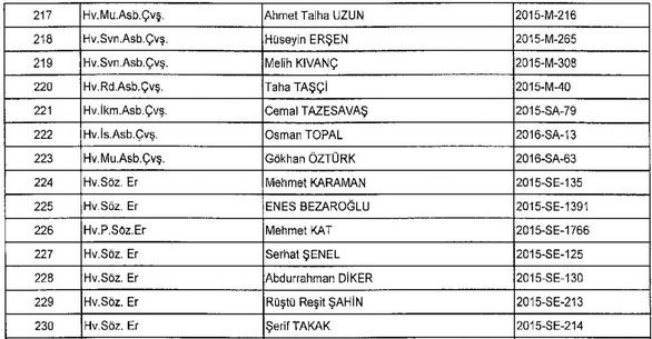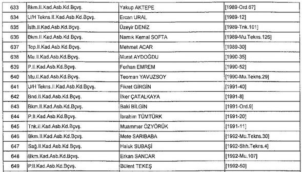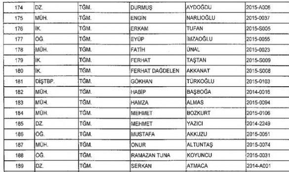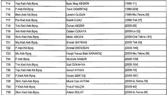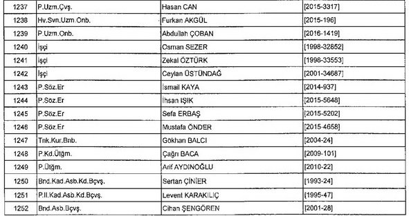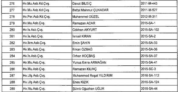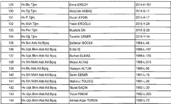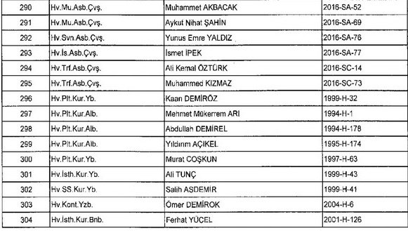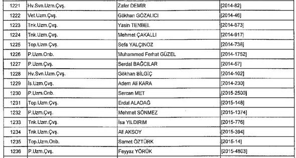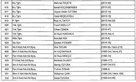 Meslekten Atılan ihraç edilen askeri personelin tam listesi - 22 Kasım Salı