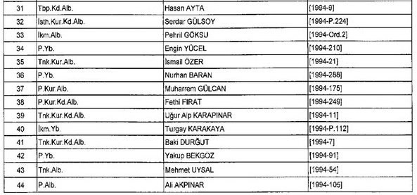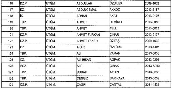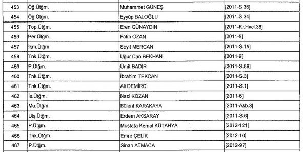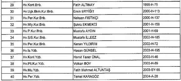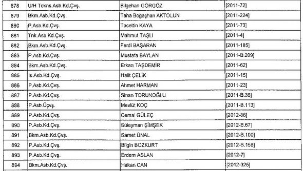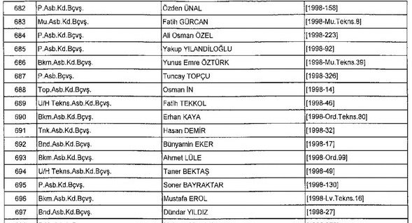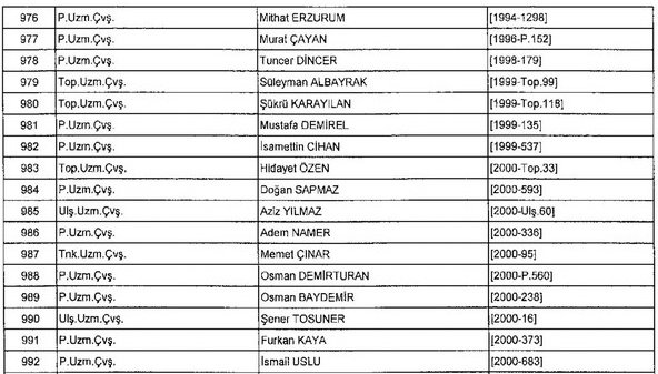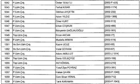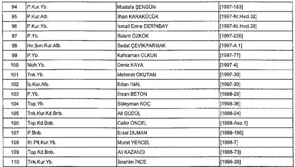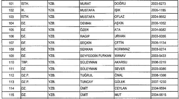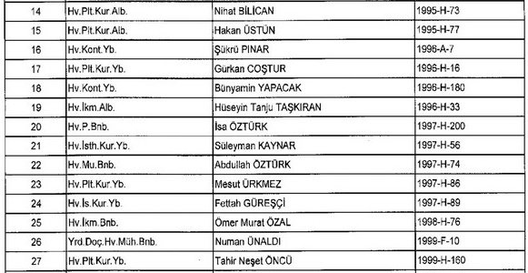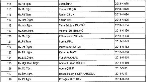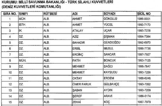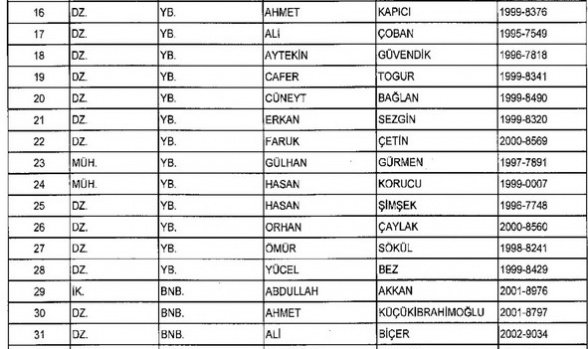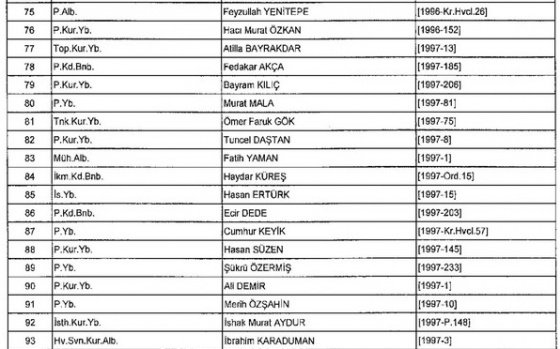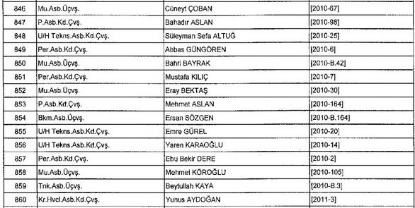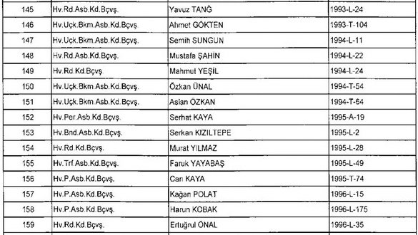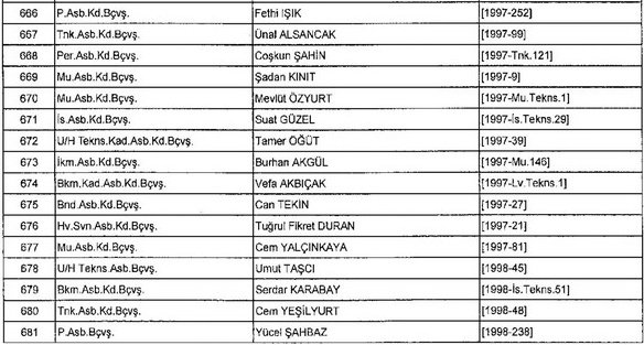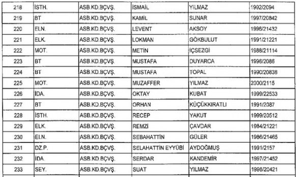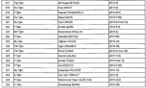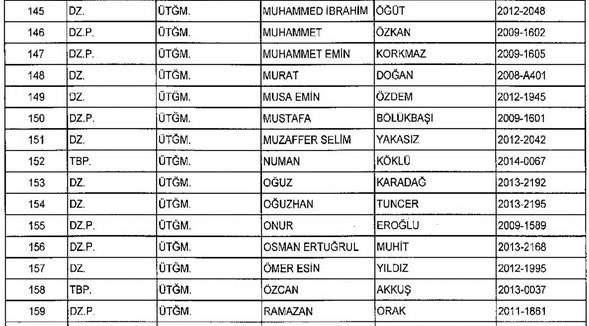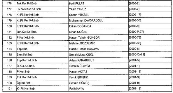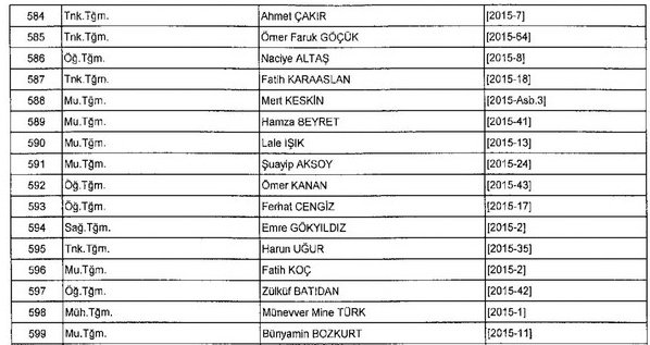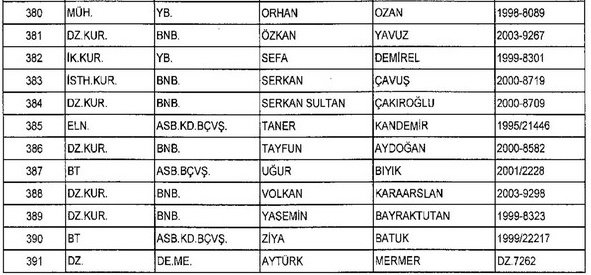 Meslekten Atılan ihraç edilen askeri personelin tam listesi - 22 Kasım Salı