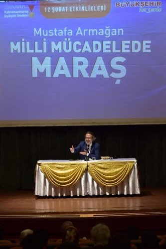 Necip Fazıl Kısakürek Kültür Merkezi’nde gerçekleştirilen konferansta Yazar Mustafa Armağan konuşmacı olarak katıldı ve Milli Mücadelede Maraş'ı anlattı.