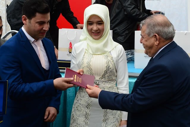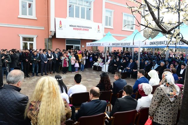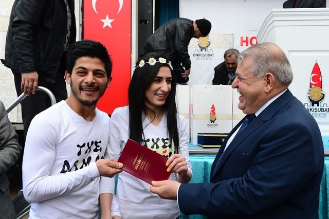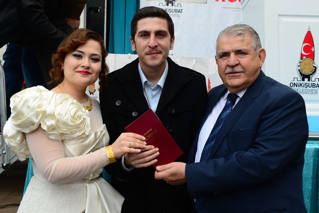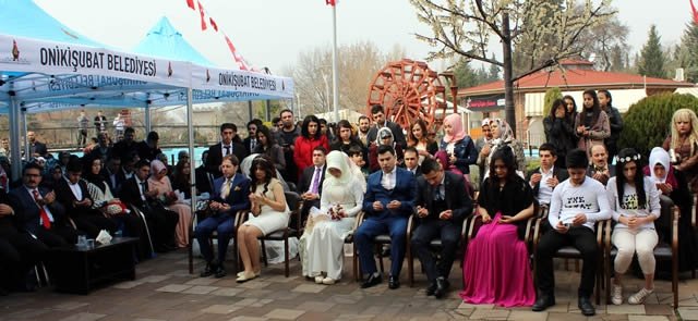 Kahramanmaraş'ta Sevgililer Günü dolayısıyla toplu nikah töreni düzenlendi. Onikişubat Belediyesi tarafından Nikah Sarayı'nın bulunduğu Atatürk Parkı'nda yapılan törende, 35 çift dünyaevine girdi.