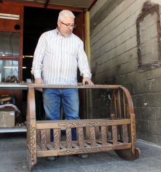Kahramanmaraşlı oymacı Fatih Akkök'ün, artık daha çok modüler sistem mobilyaların tercih edilmesine karşın el emeği, göz nuruyla yaptığı ahşap beşikler, Türkiye'nin dört bir yanından talep görüyor.
