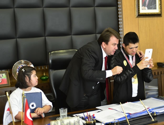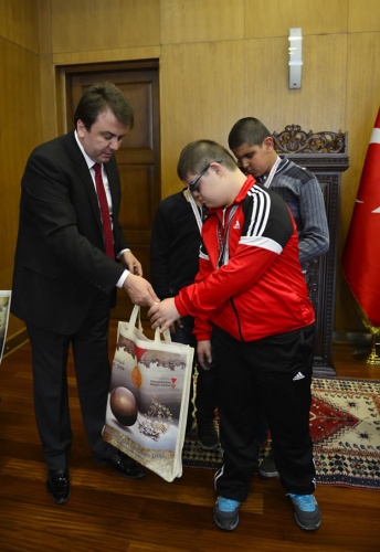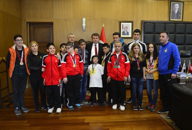 Alanya’da gerçekleştirilen engelliler yüzme şampiyonasında dereceye giren sporcular Büyükşehir Belediye Başkanı Fatih Mehmet Erkoç’u ziyaret ettiler.