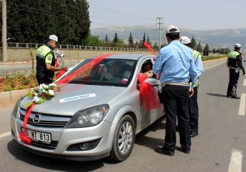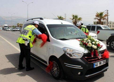 Kahramanmaraş Emniyet Müdürlüğü Trafik Tescil ve Denetleme Şube Müdürlüğü ekipleri, Anneler Günü nedeniyle sürücülere karanfil ve çikolata dağıttı.
