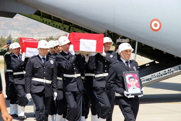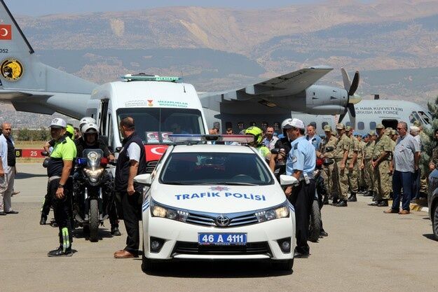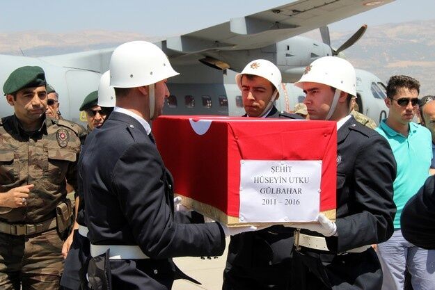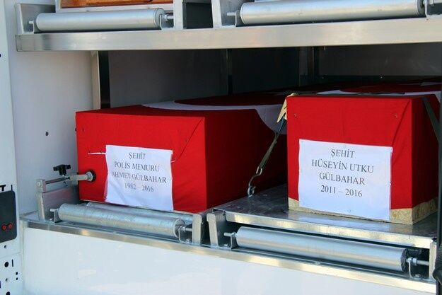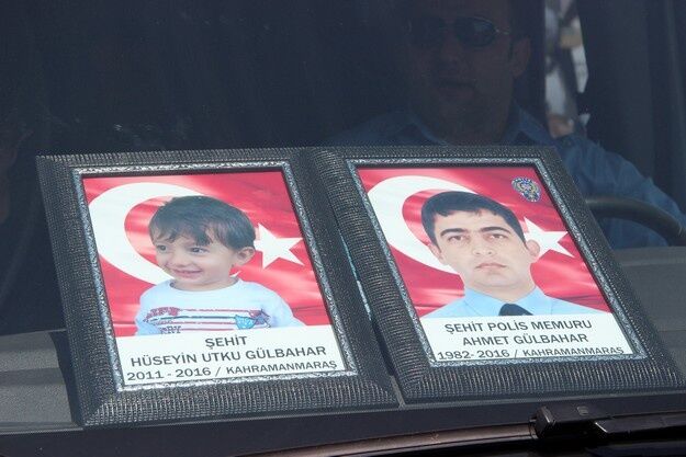 Diyarbakır’da PKK’lı teröristlerin Şehit Emniyet Amiri Murat Uçar Bölge Trafik Denetleme İstasyon Amirliği’ne bomba yüklü araçla yaptığı saldırıda şehit olan polis memuru Ahmet Gülbahar ve 5 yaşındaki oğlu Hüseyin Utku Gülbahar’ın cenazesi, memleketi Kahramanmaraş’a getirildi.
