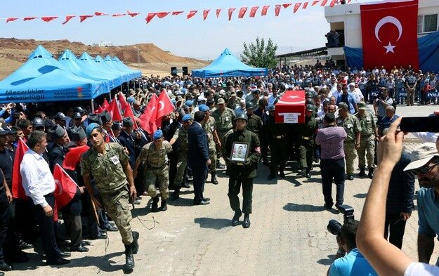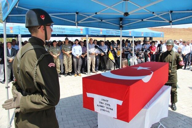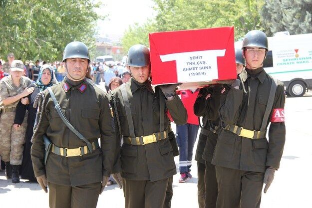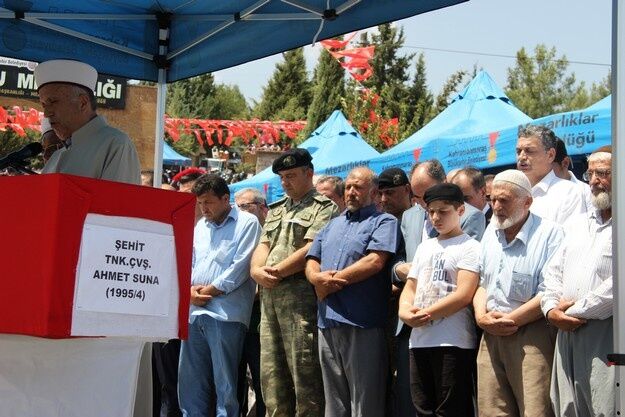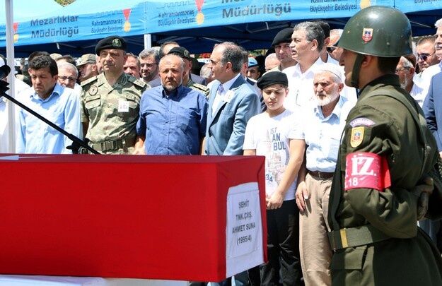 Şırnak'ın Uludere ilçesinde PKK'lı teröristlerin saldırısı sonucu şehit olan Tankçı Çavuş Ahmet Suna'nın cenazesi, memleketi Kahramanmaraş'ın Türkoğlu ilçesinde düzenlenen törenin ardından defnedildi.