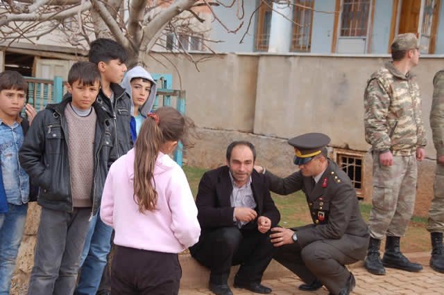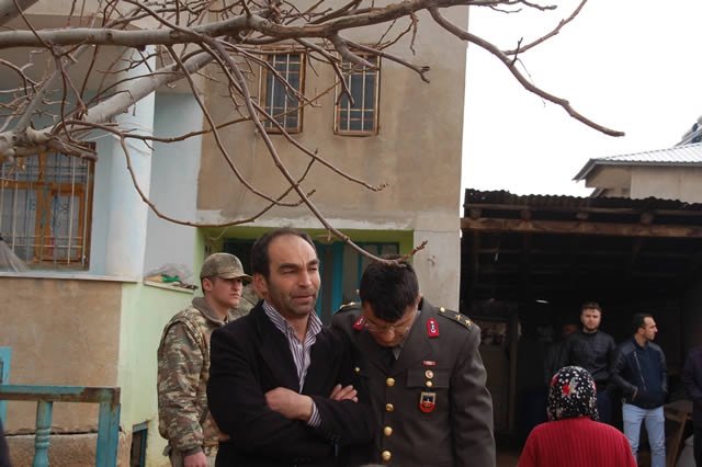 Şehidin fenalalık geçiren aile yakınlarını askerler teskin etmeye çalıştı.