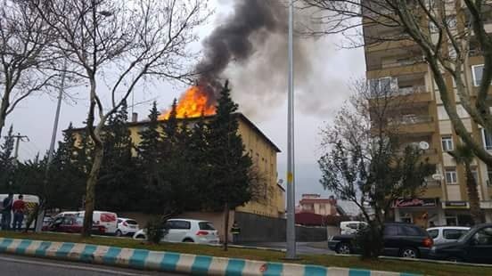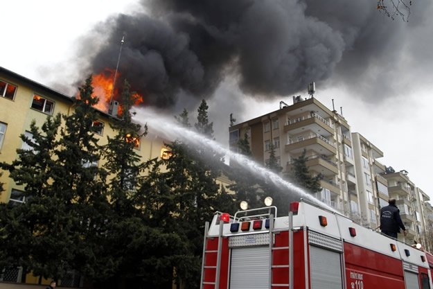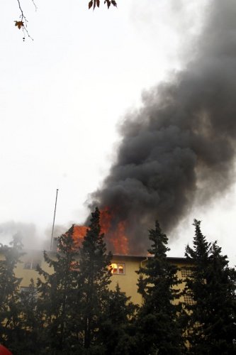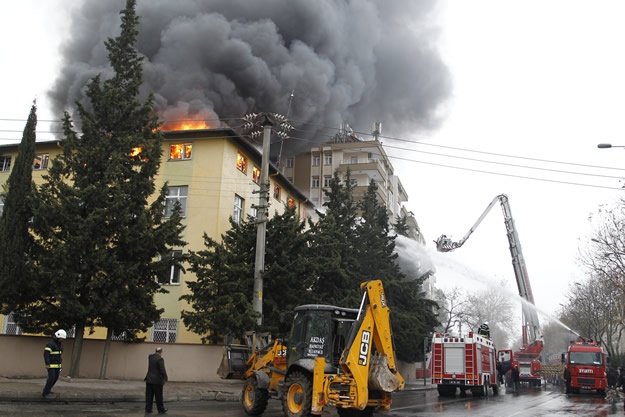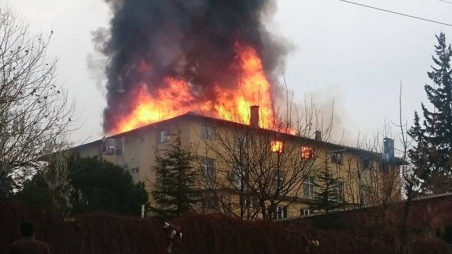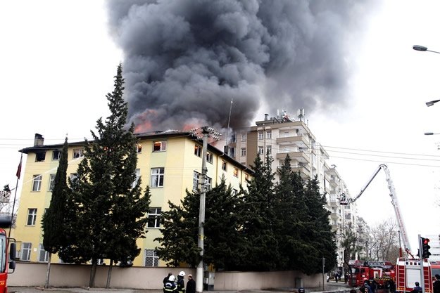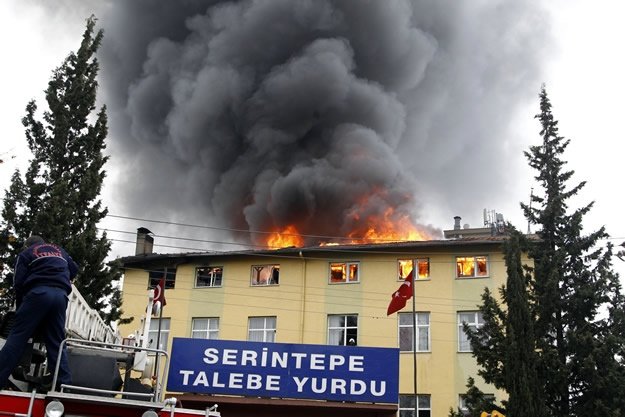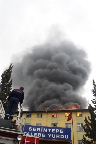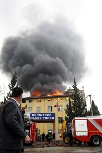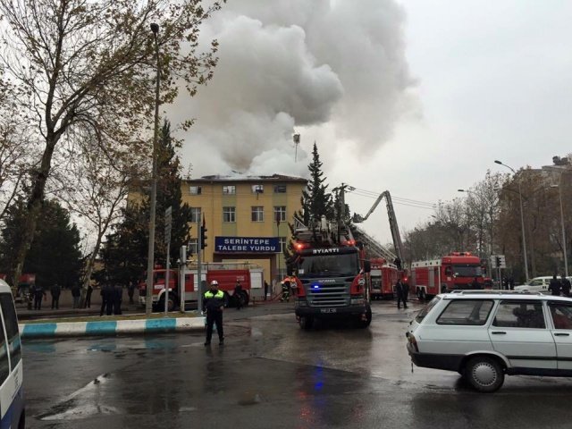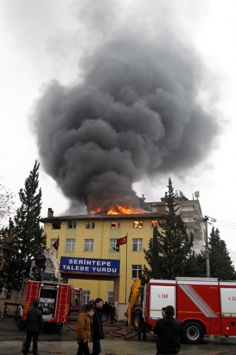 Kahramanmaraş'ta bir öğrenci yurdunda yangın çıktı. Merkez Onikişubat ilçesi Karamanlı Mahallesi'ndeki 5 katlı Serintepe Talebe Yurdu'nun en üst katındaki yatakhane bölümünde henüz belirlenemeyen nedenle yangın çıktı. Yangının fark edilmesi üzerine öğrenciler tahliye edildi.