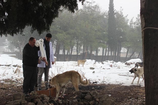 Kahramanmaraş Büyükşehir Belediyesi ekipleri, kar yağışının etkili olduğu kentte yem bulmakta zorlanan ve sokakta yaşayan hayvanlar için çeşitli alanlara yem bıraktı.