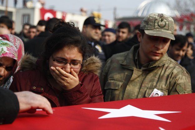 Şehidin yakınları Türk bayrağına sarılı tabutun başında göz yaşı döktü.