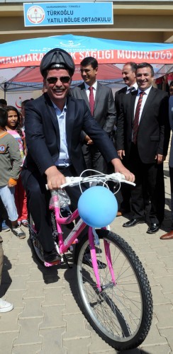 Sağlık Bakanlığınca yürütülen "Türkiye Sağlıklı Beslenme ve Hareketli Hayat Programı" kapsamında, Kahramanmaraş Halk Sağlığı Müdürlüğünce, Türkoğlu Yatılı Bölge Ortaokul öğrencilerine bisiklet dağıtıldı. Törene katılan Türkoğlu Belediye Başkanı Osman Okumuş bisikletle poz verdi.
