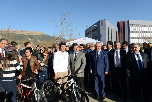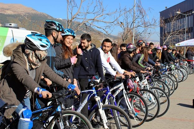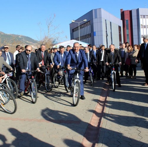 Sağlık Bakanlığınca yürütülen "Türkiye Sağlıklı Beslenme ve Hareketli Hayat Programı" kapsamında Kahramanmaraş'ta üniversite öğrencilerine 50 bisiklet dağıtıldı. KSÜ Rektörü Prof. Dr. Durmuş Deveci konuşma yaptı.
