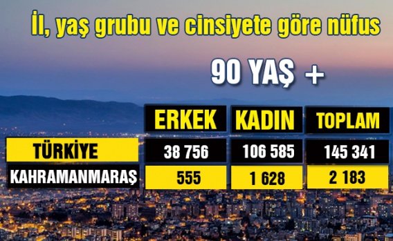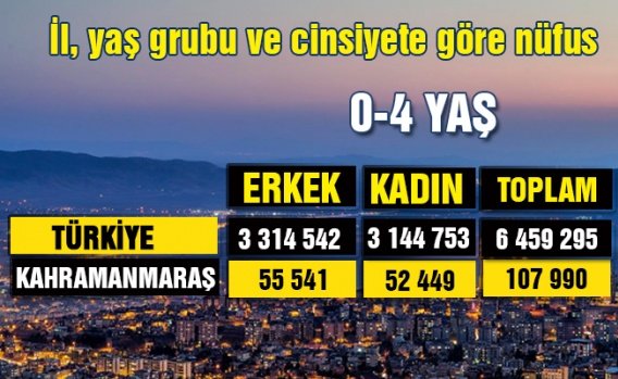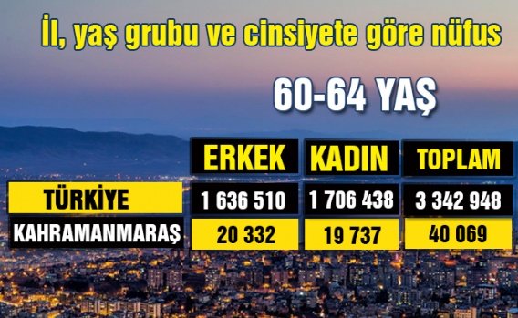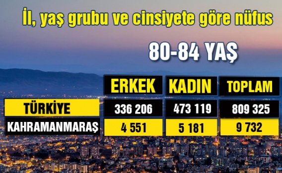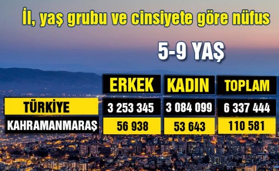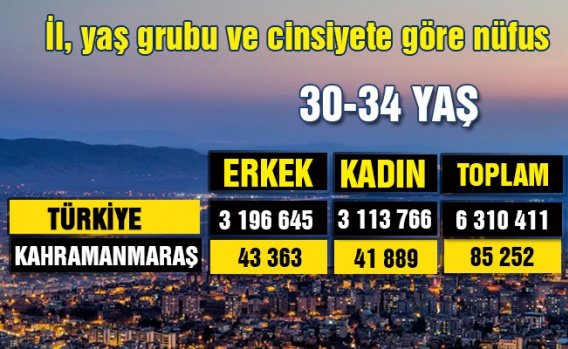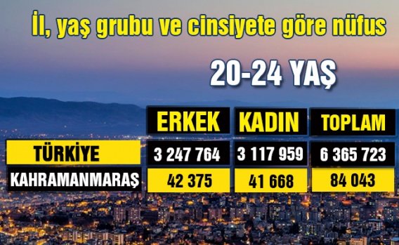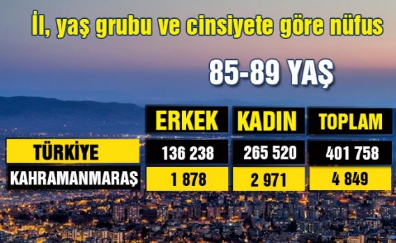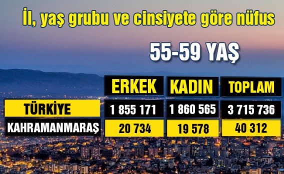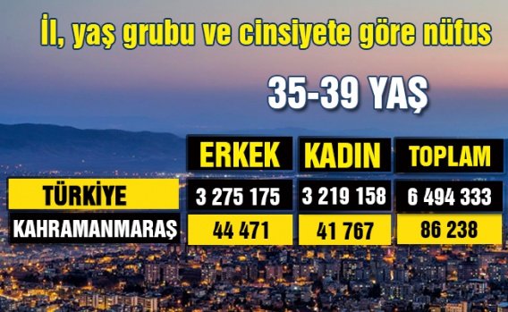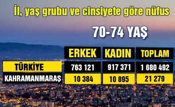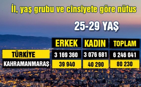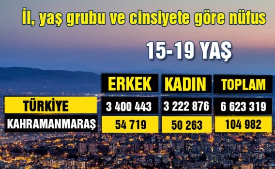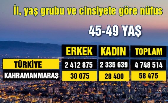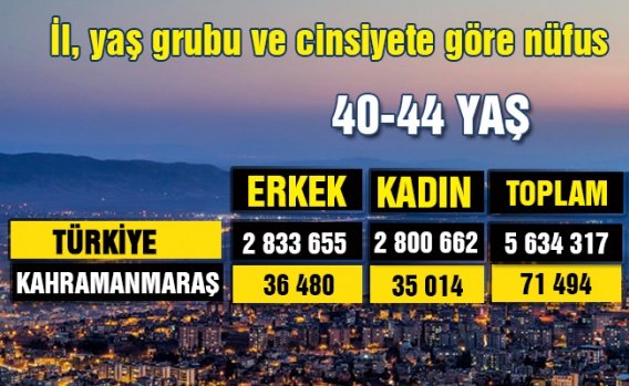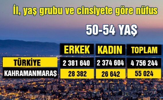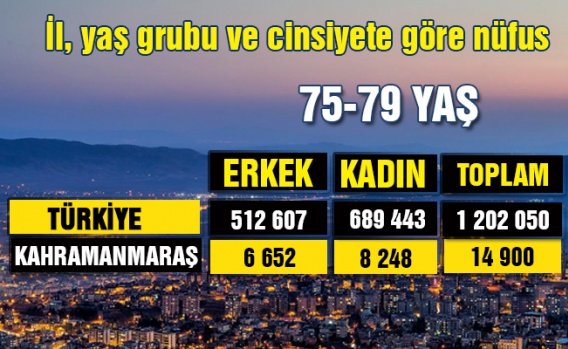 Türkiye ve Kahramanmaraş'ın yaş ve cinsiyet grubuna göre nüfusu