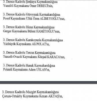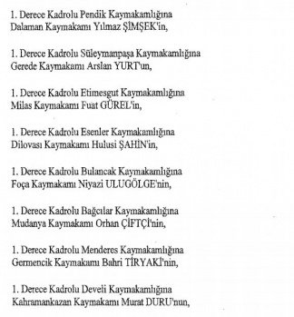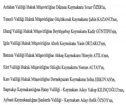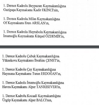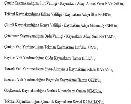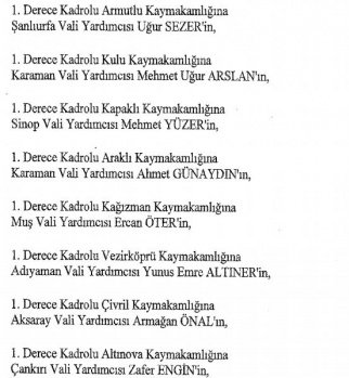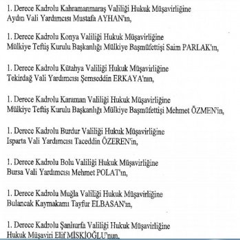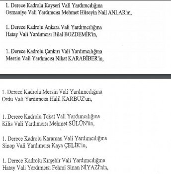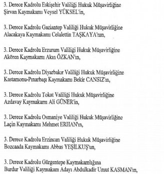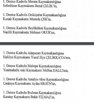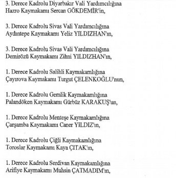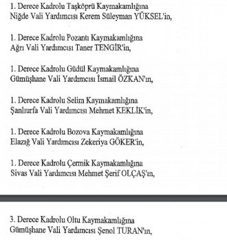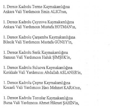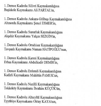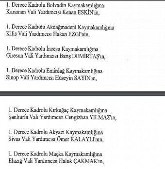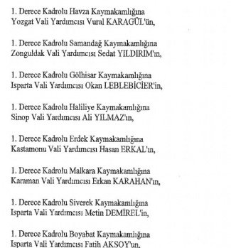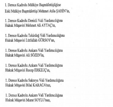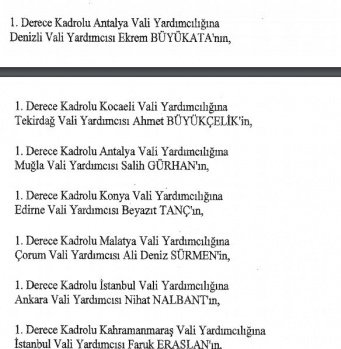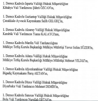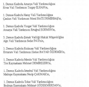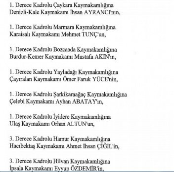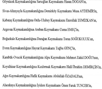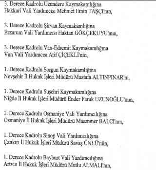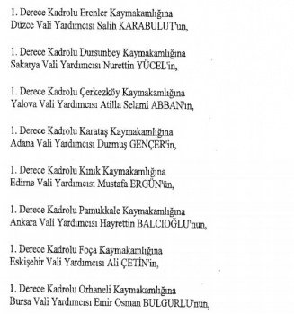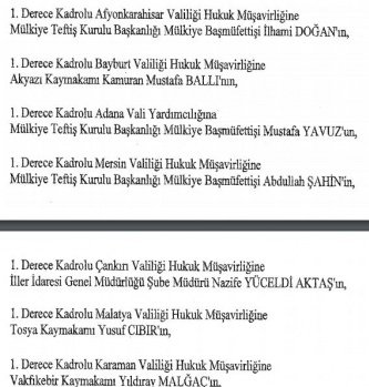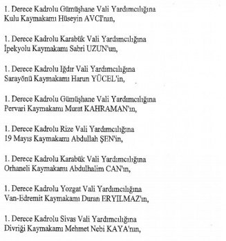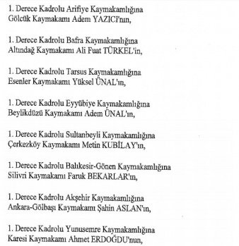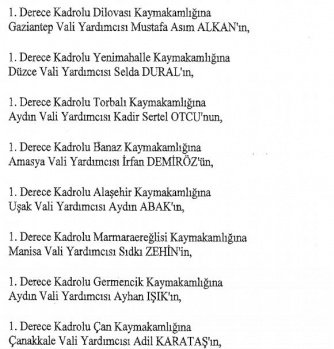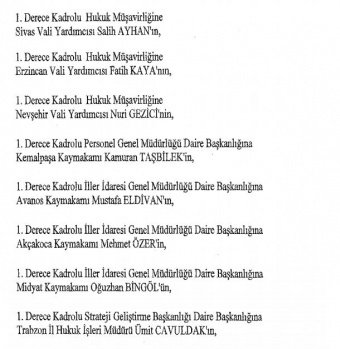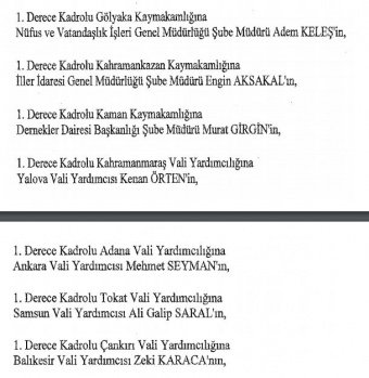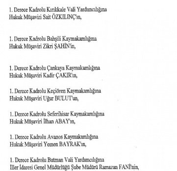 12 mülki idare amirinin de İçişleri Bakanlığı bünyesindeki görev yerlerinde değişikliğe gidildi.