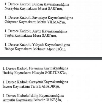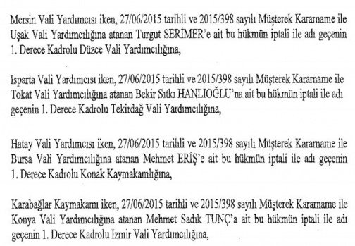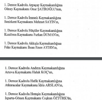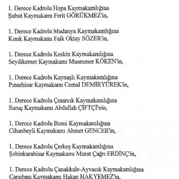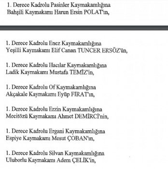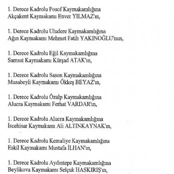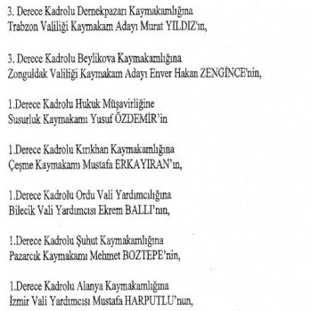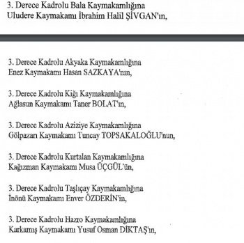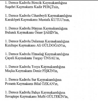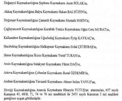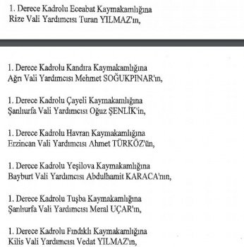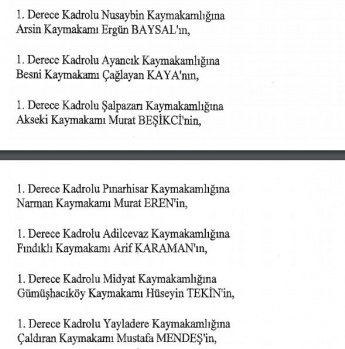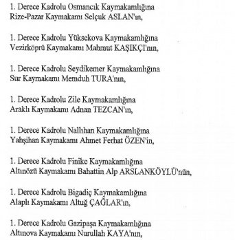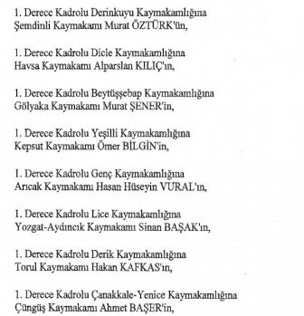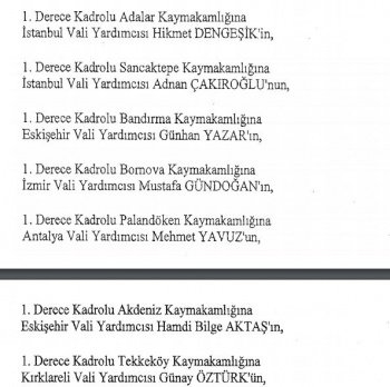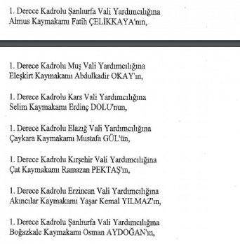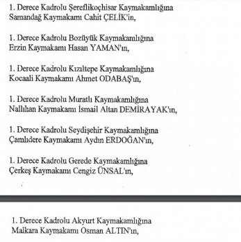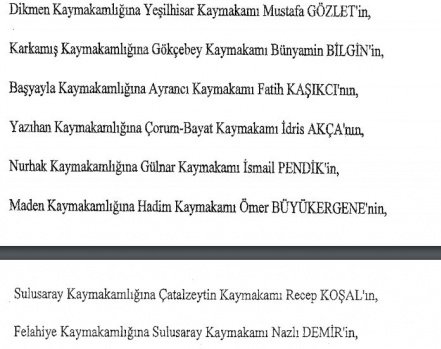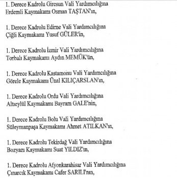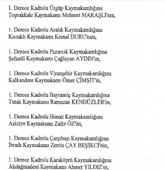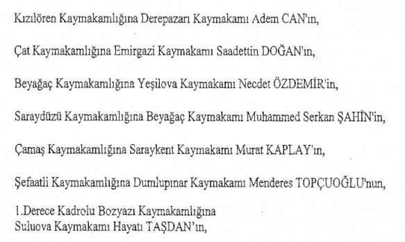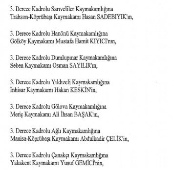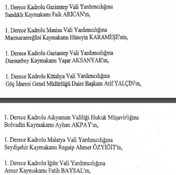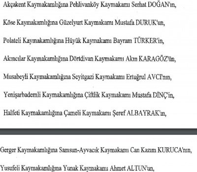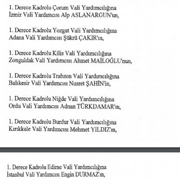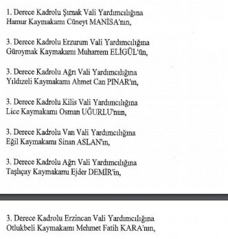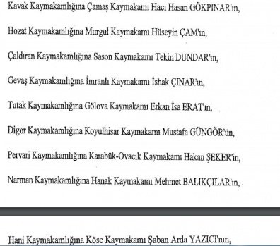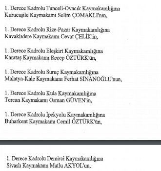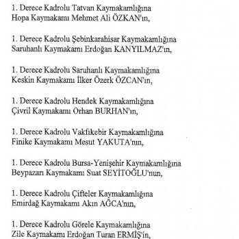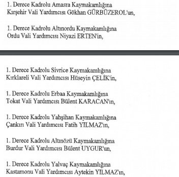 12 mülki idare amirinin de İçişleri Bakanlığı bünyesindeki görev yerlerinde değişikliğe gidildi.