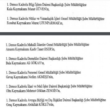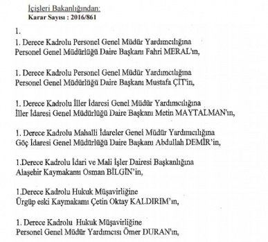 İçişleri Bakanlığınca hazırlanan kararnameyle 616 mülki idare amirinin görev yeri değiştirildi.