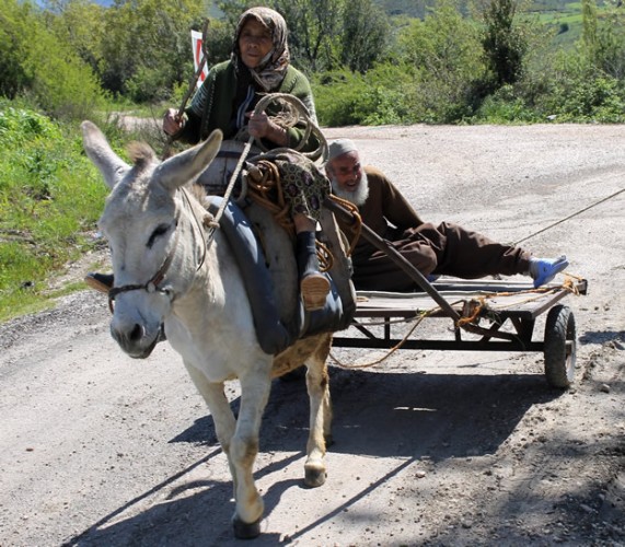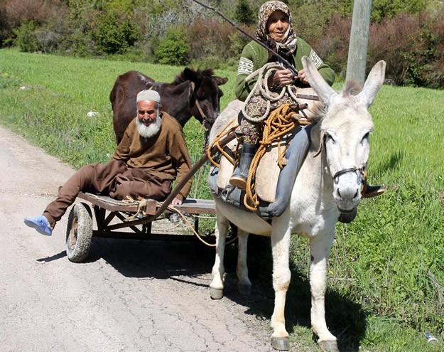 Hatay'ın Yayladağı İlçesine bağlı Kulaç Mahallesi'ndeki 90 yaşındaki Ahmet ve 75 yaşındaki Emine Çakmaz çifti, yarım asrı bulan birlikteliklerinde su içmeye bile giderken birbirlerinden ayrılmıyorlar.