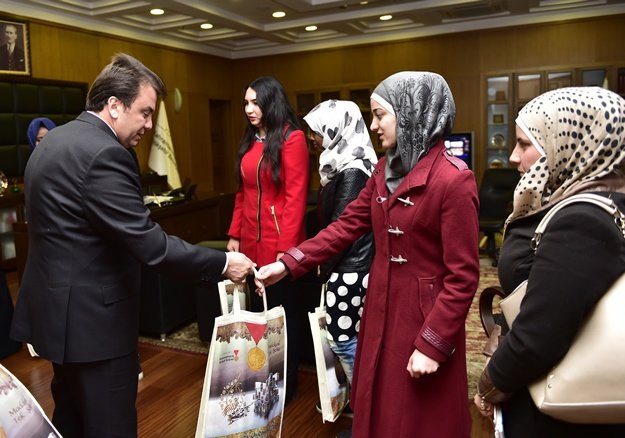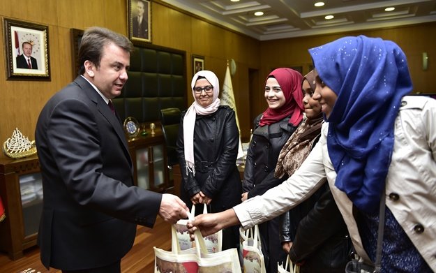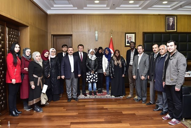 Yedi Kıta Uluslararası Öğrenci Derneği Başkanı İsmail Balakan ve bir grup öğrenci Büyükşehir Belediye Başkanı Fatih Mehmet Erkoç’u ziyaret ettiler.