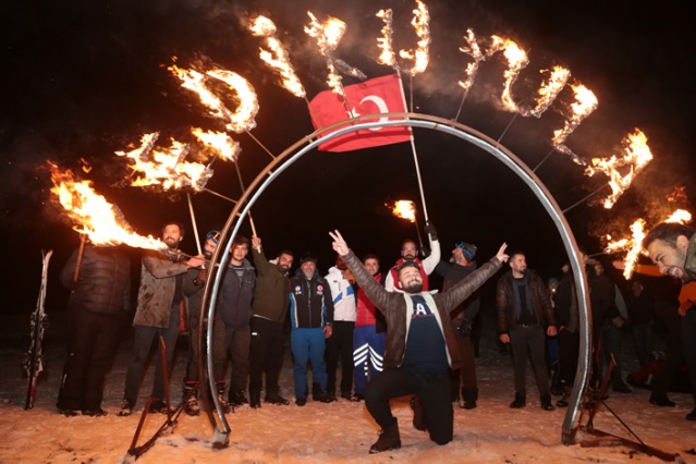 Kahramanmaraş'ta geçen yıl hizmete giren uluslararası standartlardaki Yedikuyular Kayak Merkezi'nde, yüzlerce kişi kar üstünde yeni yılı coşkuyla karşıladı.
