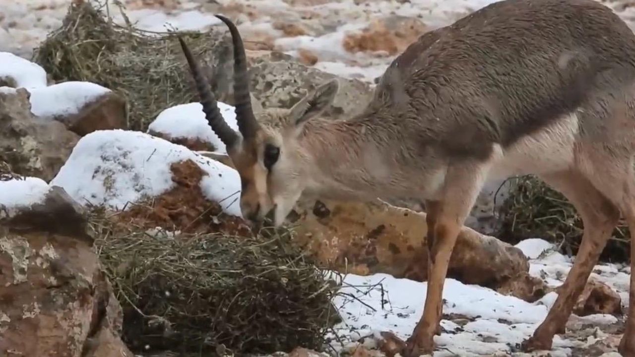 Nesli tehlike altında bulunan ve dünyada yalnızca Hatay’ın Kırıkhan ilçesinde yaşamını sürdüren Hatay Dağ Ceylanları, dört yıl aradan sonra yeniden kar manzarasıyla görüntülendi. Kar yağışının ardından ceylanların bulunduğu üretme sahasında doğayla iç içe anlar yaşandı.