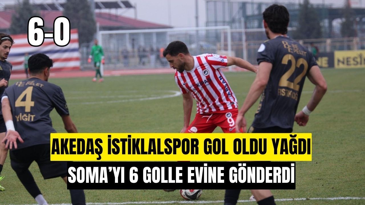 İkinci yarıya her iki takım da oyuncu değişiklikleriyle başlarken, Somaspor’un farkı azaltma girişimleri Akedaş İstiklalspor savunmasında etkisiz kaldı. 54. dakikada Kemal Rüzgar, hat-trick yaparak skoru 4-0’a taşıdı. Oyunun kontrolünü tamamen elinde tutan kırmızı-beyazlılarda, 76. dakikada kaptan Muhammed Akarslan kazanılan penaltıyı gole çevirerek farkı beşe çıkardı. Karşılaşmaya damga vuran Kemal Rüzgar, 80. dakikada attığı golle skoru belirledi: 6-0.