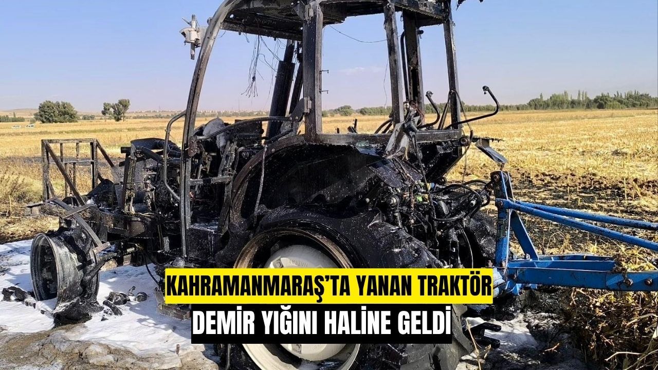 Kahramanmaraş Elbistan’da yanan traktör demir yığınına döndü