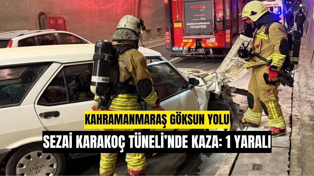 Kahramanmaraş–Kayseri karayolu üzerinde bulunan Sezai Karakoç Tüneli’nde, Göksun istikametinde seyir halindeki araçların karıştığı çift taraflı trafik kazası meydana geldi. Kazada araç içerisinde sıkışan bir kişi, itfaiye ekiplerinin titiz çalışmasıyla kurtarılarak hastaneye kaldırıldı.