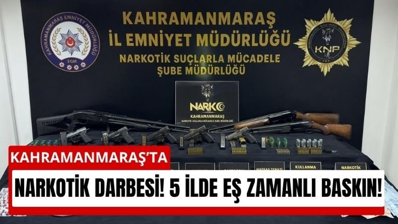 Kahramanmaraş merkezli yürütülen geniş çaplı uyuşturucu soruşturması kapsamında 5 ilde eş zamanlı operasyon düzenlendi. Cumhuriyet Başsavcılığı koordinesinde gerçekleştirilen baskınlarda 45 şüpheli gözaltına alındı.