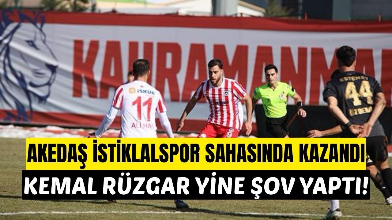 İkinci yarıda baskısını artıran Kahramanmaraş İstiklalspor, 68. dakikada Kemal Rüzgar’ın golüyle 1-0 öne geçti. Golün ardından oyunun kontrolünü elinde tutan ev sahibi ekip, rakibine net gol fırsatı tanımadı.