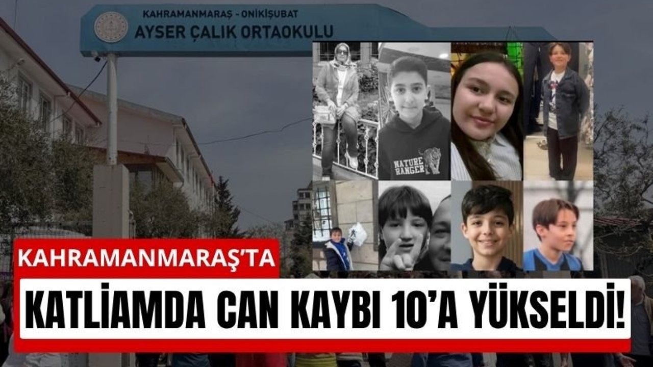 Onikişubat ilçesi Haydarbey Mahallesi’nde bulunan Ayser Çalık Ortaokulu’nda meydana gelen olayda daha önce 1 öğretmen ve 8 öğrencinin hayatını kaybettiği açıklanmıştı. Son gelişmeyle birlikte toplam hayatını kaybedenlerin sayısı 10 oldu.