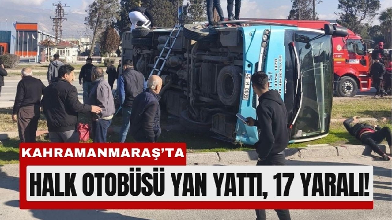 Kahramanmaraş’ta üç aracın karıştığı trafik kazasında halk otobüsünün yan yatması sonucu 17 kişi yaralandı. Kaza, Eyüpsultan Mahallesi Gaziantep Çevreyolu üzerinde, havaalanı kavşağı istikametinde meydana geldi.