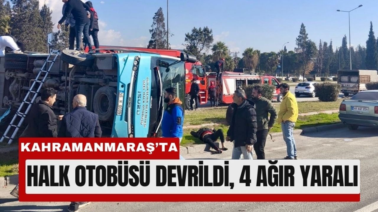 Kahramanmaraş’ta meydana gelen trafik kazasında halk otobüsünün devrilmesi sonucu ilk belirlemelere göre 4 kişi ağır yaralandı. Kaza, Kahramanmaraş–Gaziantep karayolu üzerindeki havaalanı kavşağında yaşandı.