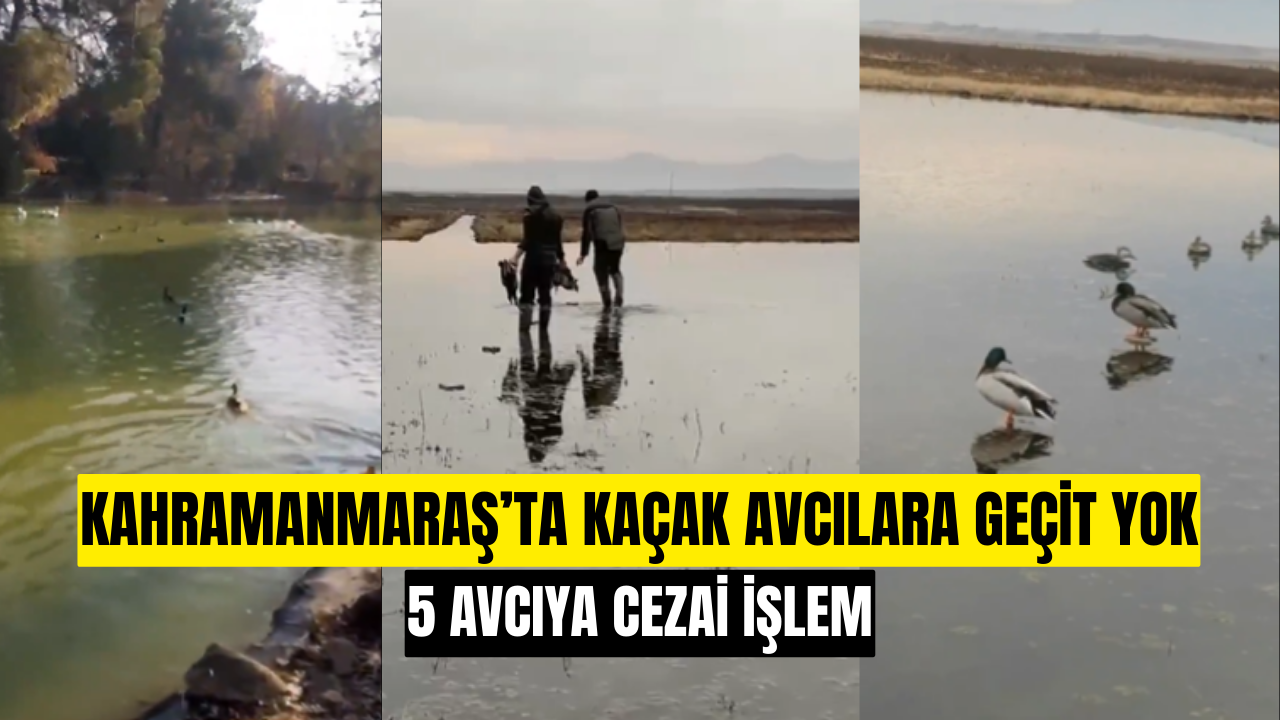 Kahramanmaraş Doğa Koruma ve Milli Parklar Müdürlüğü personelleri tarafından yürütülen denetimlerde, yasa dışı avlandığı tespit edilen 5 kişi hakkında işlem yapıldı. Denetimler sırasında avcılardan kaçak olarak avlanmış ördekler ele geçirildi.
