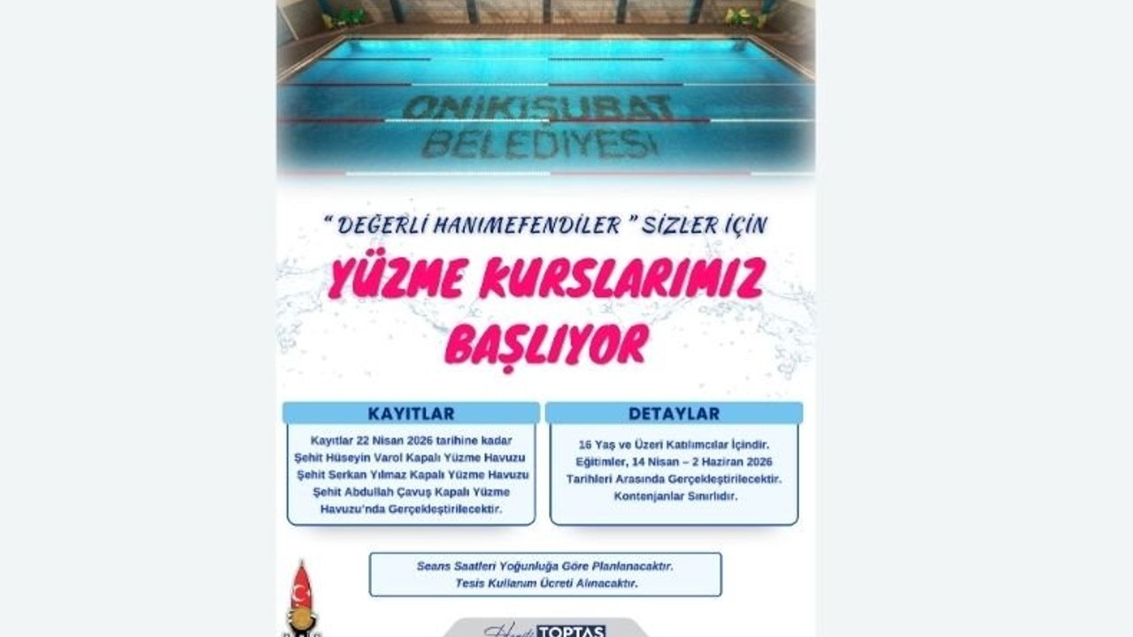 Kahramanmaraş’ın Onikişubat ilçesinde kadınların sosyal hayata daha aktif katılımını desteklemek amacıyla başlatılan yüzme kursları için kayıt süreci başladı. Yoğun talep gören kursların kontenjanlarının kısa sürede dolması bekleniyor.