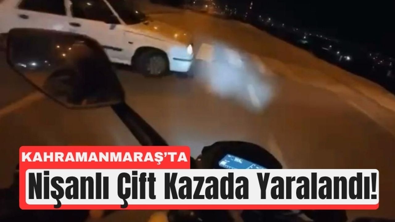 Kahramanmaraş’ın Onikişubat ilçesinde motosikletli nişanlı çiftin karıştığı kaza, kask kamerasınca saniye saniye kaydedildi.