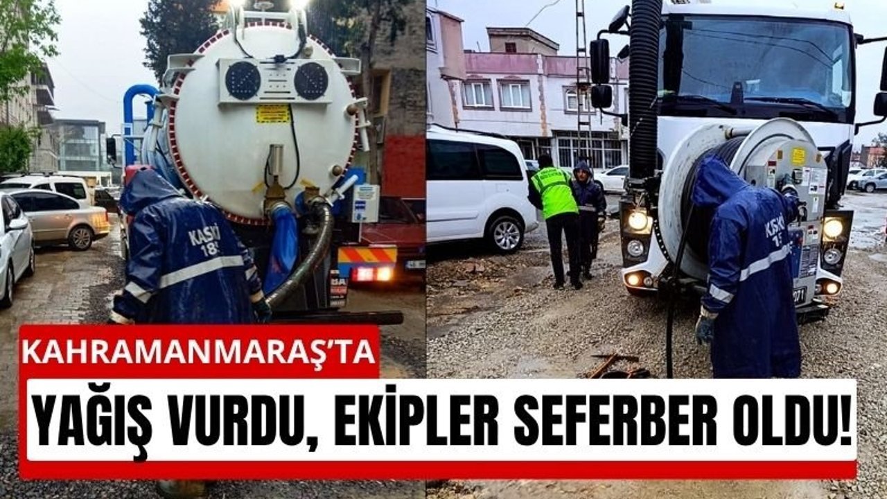 Kahramanmaraş’ta etkili olan sağanak yağışların ardından belediye ekipleri şehir genelinde yoğun bir çalışma başlattı. Büyükşehir Belediyesi ile KASKİ’nin ortak yürüttüğü çalışmalarla, yağışların yol açtığı hasarlar hızlıca gideriliyor.