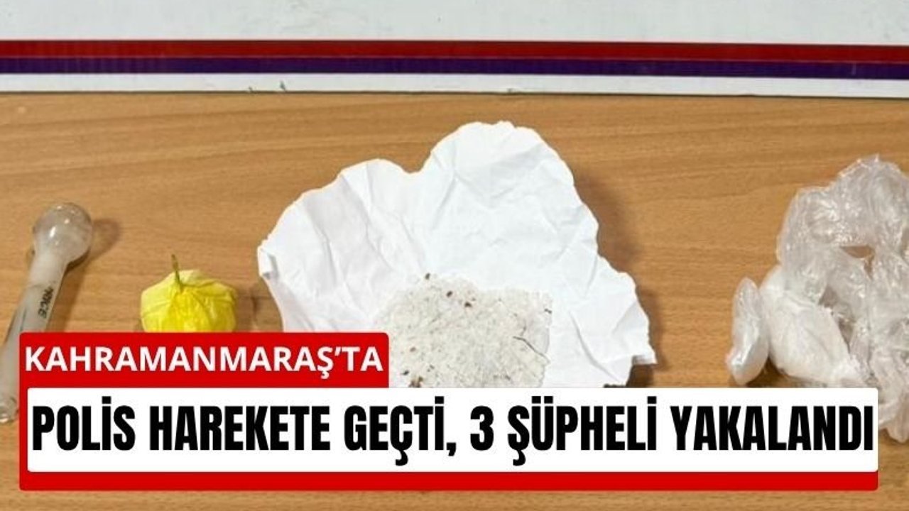 Kahramanmaraş’ın Göksun ilçesinde gerçekleştirilen uyuşturucu operasyonunda 3 kişi gözaltına alındı. Operasyonda çeşitli miktarda metamfetamin maddesi ele geçirildi.