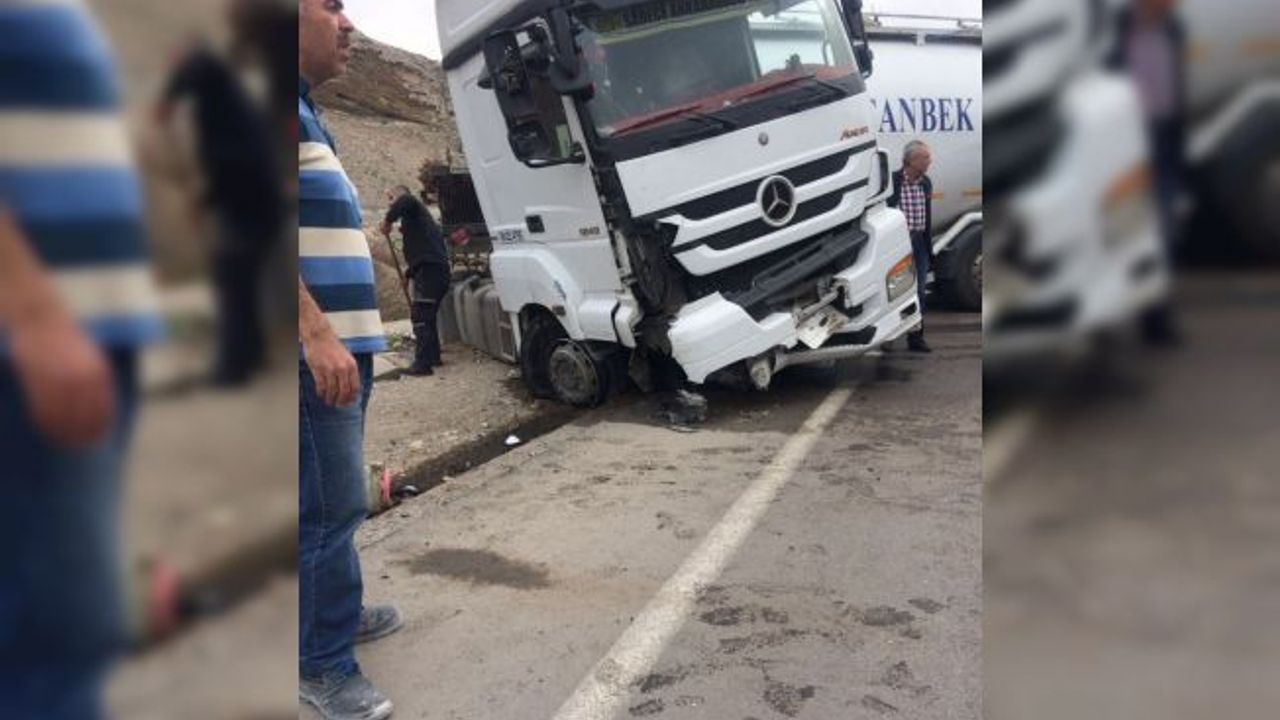 Ankara’nın Nalıhan ilçesinde tekeri patlayan tır, yoldan çıkarak kayalıklara çarptı.